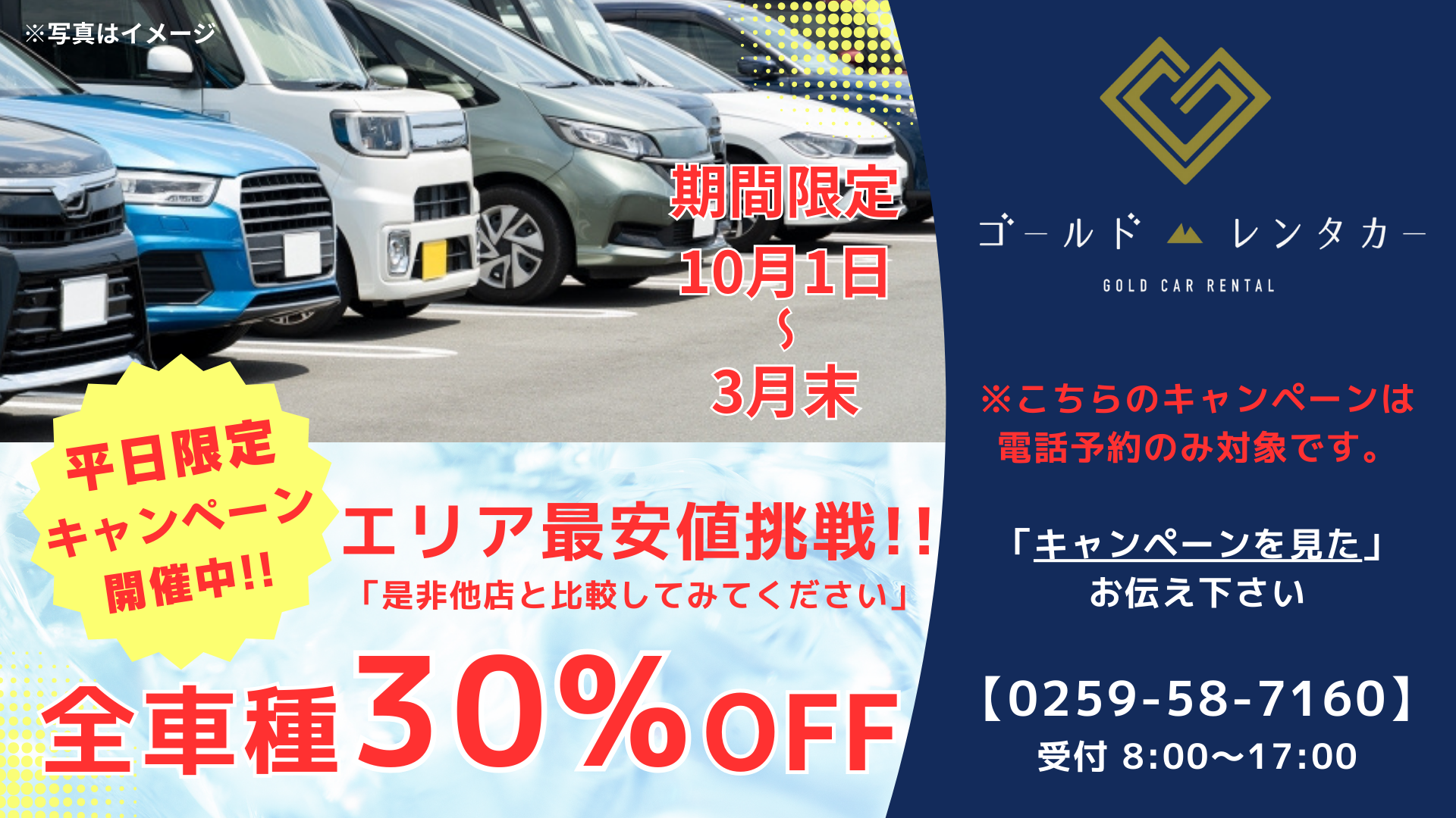平日限定全車種30%OFF
